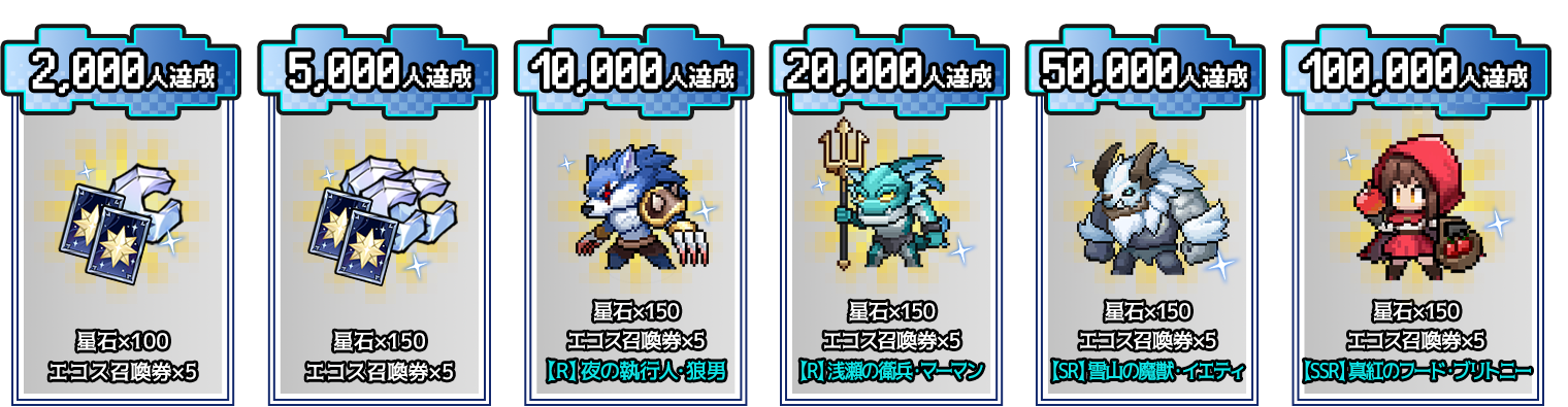 ※ 事前登録報酬は累積配布方式となります。目標人数を達成した場合、それまでのすべての段階の報酬も配布されます。